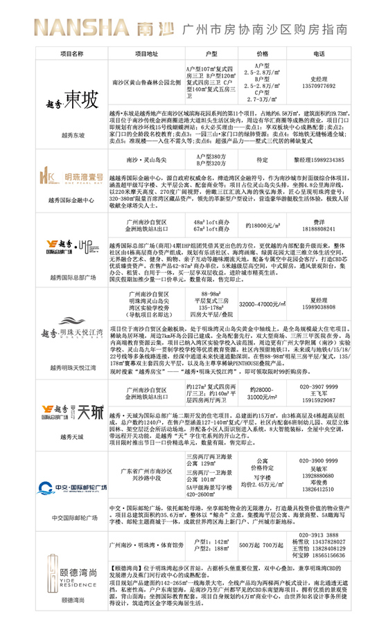 此外,本次論壇主辦方還貼心為到場嘉賓準備了一份“置業(yè)寶典”--南沙購房指南,房源、戶型、價格等一目了然。