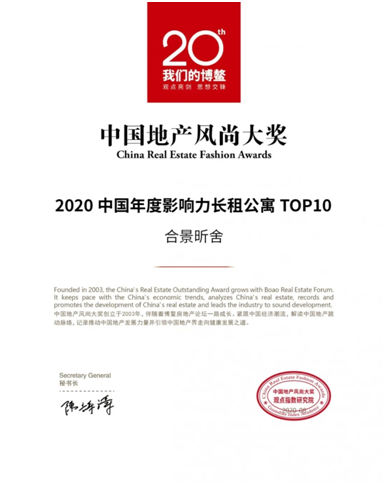(合景公寓榮獲“2020中國年度影響力長租公寓TOP10”大獎(jiǎng))