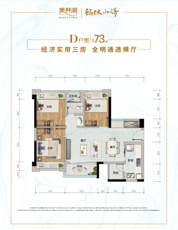 如73㎡戶型演繹空間魔法,創(chuàng)新性實現(xiàn)合理三房、零走道式大氣橫廳、全屋飄窗、雙陽臺、L型廚房……實用率超高,可謂將面積利用到極致。