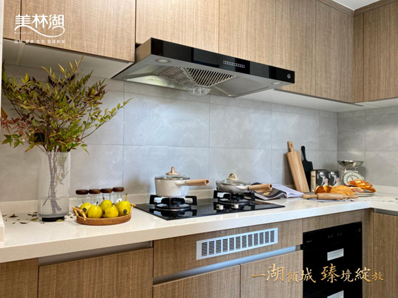 更難得的是,項目交標(biāo)全部選用國內(nèi)外知名品牌,比如,以華麗吊燈、藝術(shù)玻璃立面裝飾的豪華入戶大堂,帶儲物空間和斜面全身鏡的浴室收納,贈送燃氣灶、消毒柜、抽油煙機三件套的廚房空間,還有智能一鍵回家、離家的智能化系統(tǒng)等等……