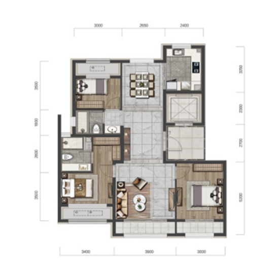 與此同時(shí),122㎡又充分保障“南向會(huì)客廳+北向大餐廳”的獨(dú)立空間感,塑造兩個(gè)平行且互不干擾的場(chǎng)景,給家庭成員更多安靜獨(dú)享生活的可能。而主臥也采用套間設(shè)計(jì),設(shè)有衣帽間和衛(wèi)生間,提高主人生活舒適度的同時(shí),保證了私密性。
