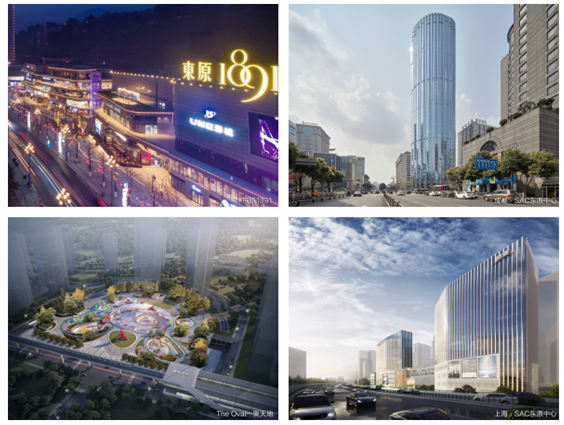 (左上:東原1891、左下:TheOval一奧天地、右上:成都·SAC東原中心、右下:上海·SAC東原中心)