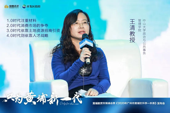 峰會開始,一段VCR,將當(dāng)代家長教育困境呈現(xiàn)于眾人面前,直接帶出黃埔城市發(fā)展與教育兩大議題。其中,教育部辦公廳前副主任、教育部前新聞發(fā)言人王旭明教授,廣州市社會科學(xué)院高級研究員彭澎教授、中山大學(xué)政治與公共事務(wù)管理學(xué)院教授王清教授,從黃埔的發(fā)展脈絡(luò)、人才、規(guī)劃、教育等方面,解讀黃埔憑什么稱得上“風(fēng)華正茂”;上學(xué)幫CEO凌可仁、綠地香港集團(tuán)領(lǐng)導(dǎo),則從學(xué)校、升學(xué)擇校、樓市、人居等維度,剖析黃埔新一代該如何乘風(fēng)破浪。