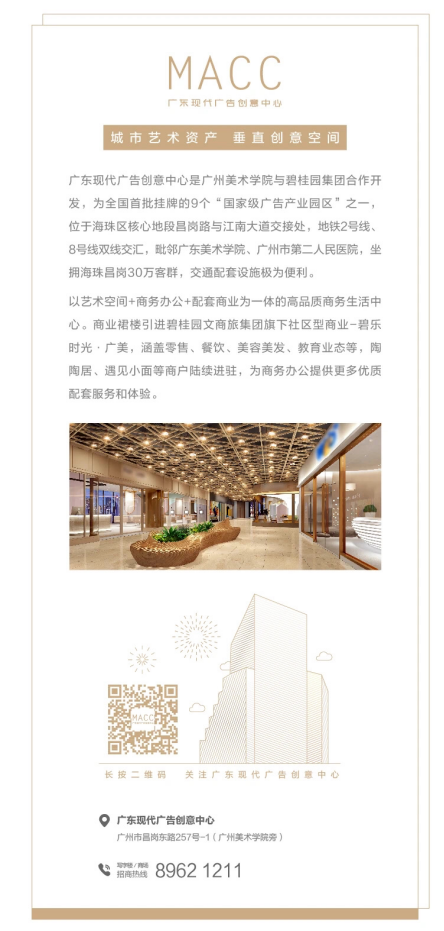 廣東現(xiàn)代廣告創(chuàng)意中心由碧桂園文商旅集團全力管理運營,作為碧桂園集團旗下專注商業(yè)文旅資產(chǎn)的運營平臺,商業(yè)總量逾?1015?萬㎡,商業(yè)項目超?100?個,戰(zhàn)略合作品牌商家1000+家,囊括購物中心、社區(qū)商業(yè)、商業(yè)綜合體、長租公寓、品質(zhì)辦公等等。