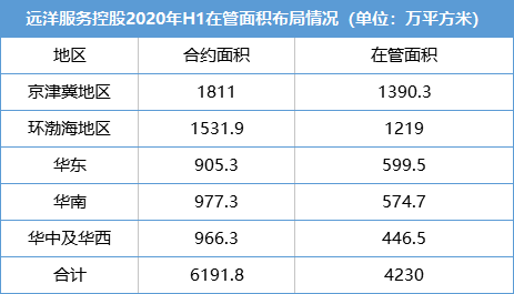 數(shù)據(jù)顯示,2020年上半年遠洋服務在京津冀、環(huán)渤海區(qū)域在管面積達到1390.3萬平方米、1219萬平方米,占總在管面積約61.69%。