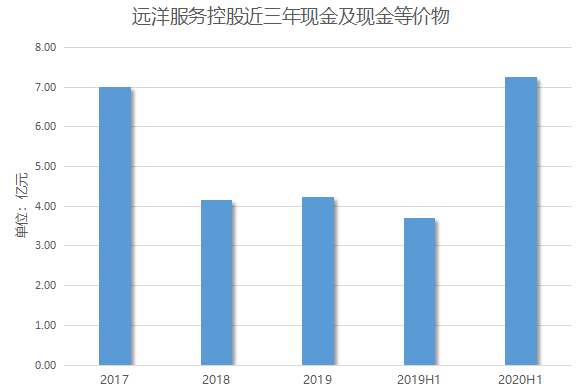 而對外拓展,首先要解決的就是資金問題。從現(xiàn)金層面看,2017-2019年及2020年上半年,遠洋服務現(xiàn)金及現(xiàn)金等價物為7.01億元、4.15億元、4.23億元及7.25億元。