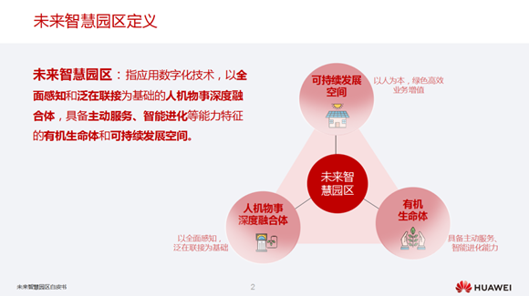 2020年5月19日,華為發(fā)布《未來智慧園區(qū)白皮書》,給出了具有前瞻性的未來智慧園區(qū)定義及內(nèi)涵,系統(tǒng)闡述了未來智慧園區(qū)的特征及場景。