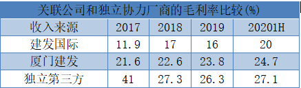 此外,建發(fā)物業(yè)由母公司開發(fā)的物業(yè)管理費用雖然比獨立第三方來得高,但后者毛利率反而要高于關(guān)聯(lián)公司。而且,建發(fā)物業(yè)有超過六成的收入來自獨立第三方,這跟市場上其他物業(yè)管理公司比較不一樣。