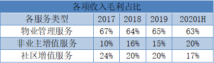 收入結(jié)構(gòu)部份,主要分為物業(yè)管理、非業(yè)主增值服務(wù)和社區(qū)增值服務(wù)收入,分別占總收入的62.3%、28.3%及9.4%,三者的毛利率分別為24.5%、14.8%及51.3%。