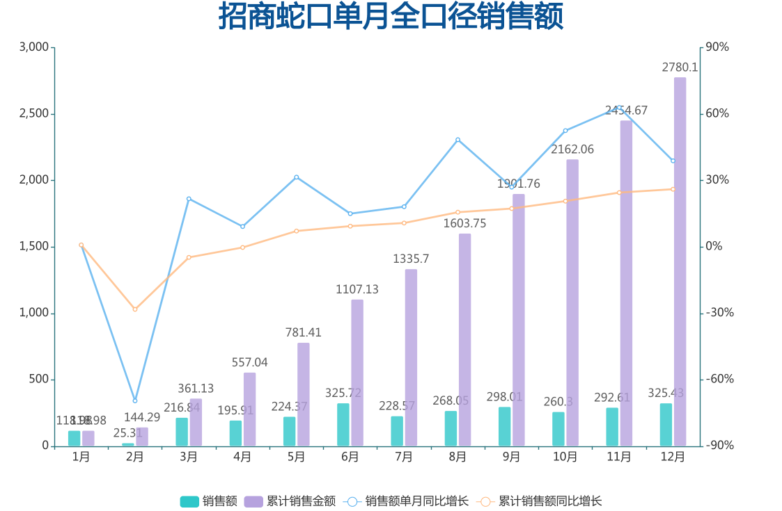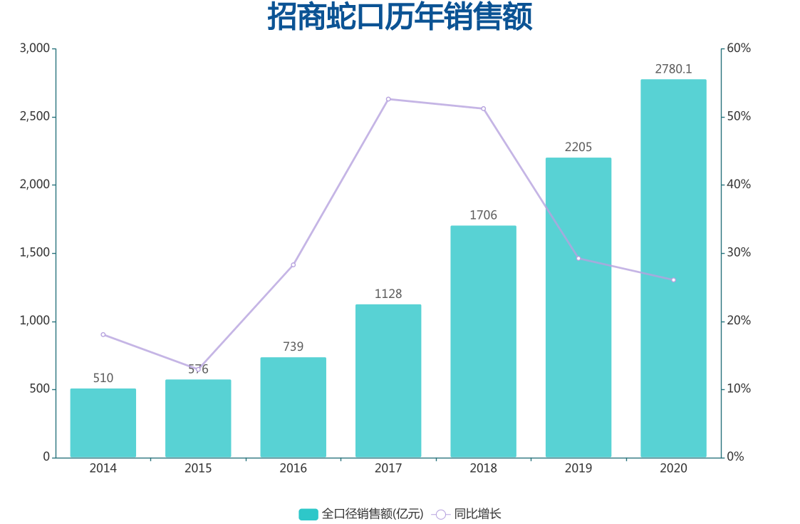 2020年,招商蛇口全年完成銷售金額2780.1億元,與2019年完成的2205億元的全年業(yè)績(jī)相比,銷售規(guī)模凈增長575億元,同比增長26.1%。