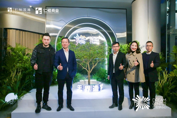 接下來,仁恒商業(yè)執(zhí)行董事鐘思亮先生、仁恒置地集團商業(yè)事業(yè)部總經(jīng)理胡偉津先生、仁恒夢中心項目總經(jīng)理黃志錚女士、仁恒置地集團深圳公司研發(fā)部總監(jiān)劉斌先生、仁恒置地集團深圳公司營銷部總監(jiān)黃慶先生共同上臺,啟動澆灌仁恒夢中心的第一棵“希望之樹”,寓意著夢中心自此迎來破“界”新生。隨著招商中心的正式開啟,在未來兩年的時間里,這棵“希望之樹”將伴隨夢中心一起成長壯大。