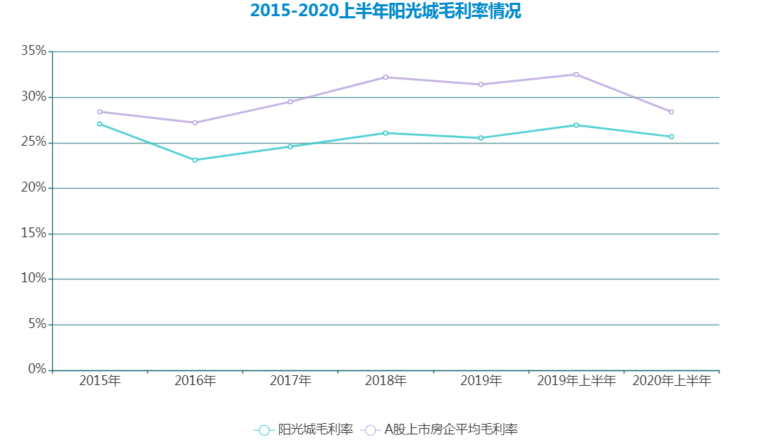 表現(xiàn)在數(shù)據(jù)上,陽光城上半年毛利率和凈利率較2019年末均有小幅提升,期內(nèi)實(shí)現(xiàn)營(yíng)收241.2億元,同比增長(zhǎng)7%,毛利率錄得25.67%,凈利率錄得7.34%,同比均提升0.14及0.26個(gè)百分點(diǎn)。