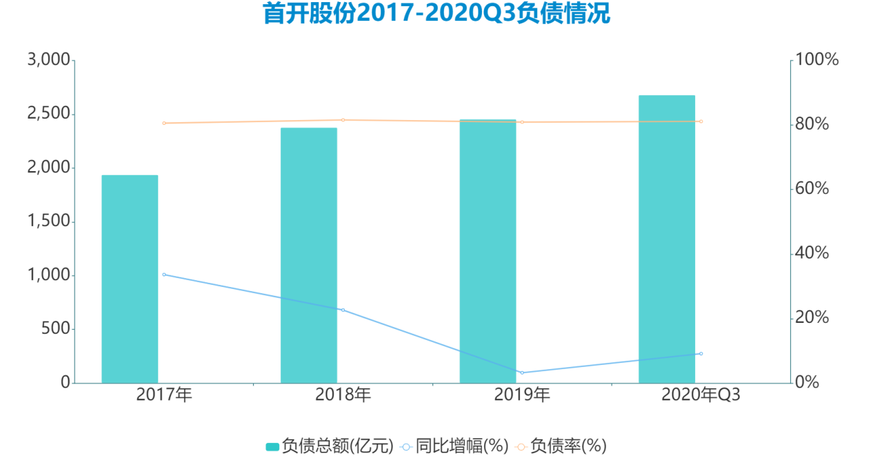 在2020年一份公告中,對于首開的融資有這樣的評價(jià):發(fā)行人債務(wù)規(guī)模增速較快,且隨著業(yè)務(wù)的進(jìn)一步擴(kuò)張,債務(wù)規(guī)??赡苓M(jìn)一步增長,存在一定財(cái)務(wù)風(fēng)險(xiǎn)。