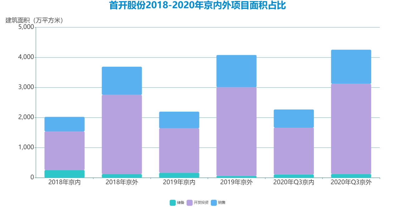 也是在這一年,首開京外項(xiàng)目銷售占比首次升到了50%以上,京外銷售面積達(dá)253.9萬平米,同比增長23.36%,占總銷售面積的67%。
