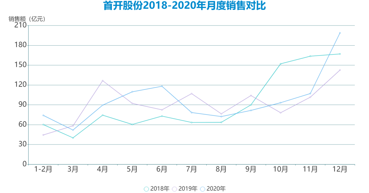 另一方面,觀察首開股份過往數(shù)年的銷售情況可以發(fā)現(xiàn),年末幾個(gè)月通常是銷售最多、表現(xiàn)最好的時(shí)間。這多半與年末沖刺的策略有關(guān),而且合作項(xiàng)目較多,在合作伙伴均加大年末銷售力度的情況下,首開股份的銷售也自然見漲。