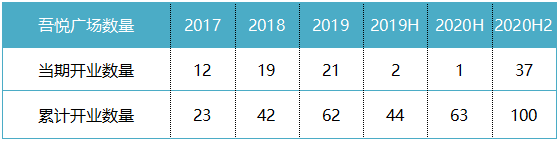 2017-2020年吾悅廣場開業(yè)情況