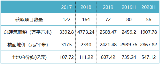 據(jù)公告披露,新城上半年新增土地儲備56幅,總建筑面積1907.78萬平方米,平均樓面地價為2867.82元/平方米。可見,無論是項目數(shù)量還是新增建筑面積都是近年低位,但均價相較2019年全年卻上升了不少。