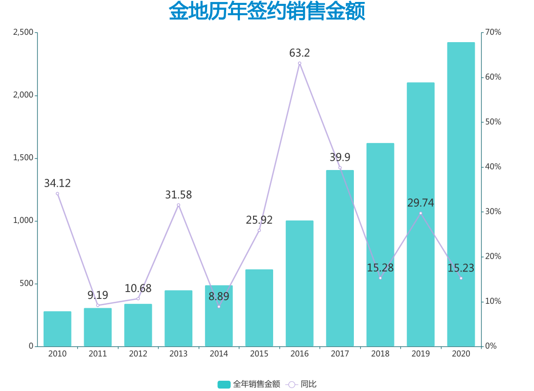 就金地而言,剛剛過去的2020年,銷售規(guī)模上實現(xiàn)簽約金額2426.8億元,同比上升15.23%。