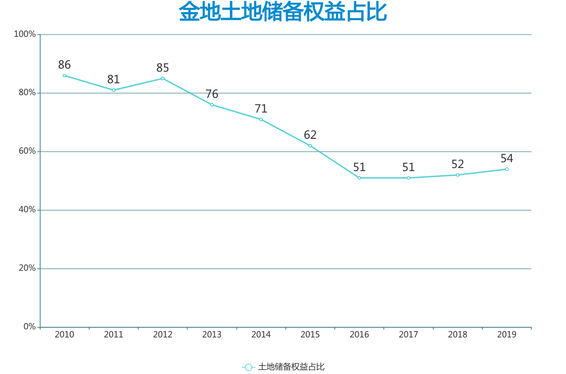 但在2015年至2019年,金地新增土地儲備權(quán)益比沒有一年超過50%。