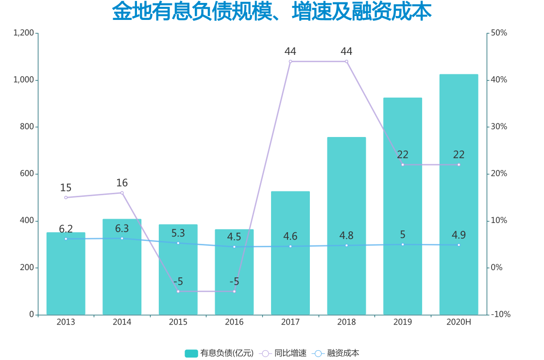 之所以如此著急,相信很大一部分原因是金地近年來發(fā)展規(guī)模不斷增大,債務(wù)水平也水漲船高,利率水平已從4.5%升至5%。