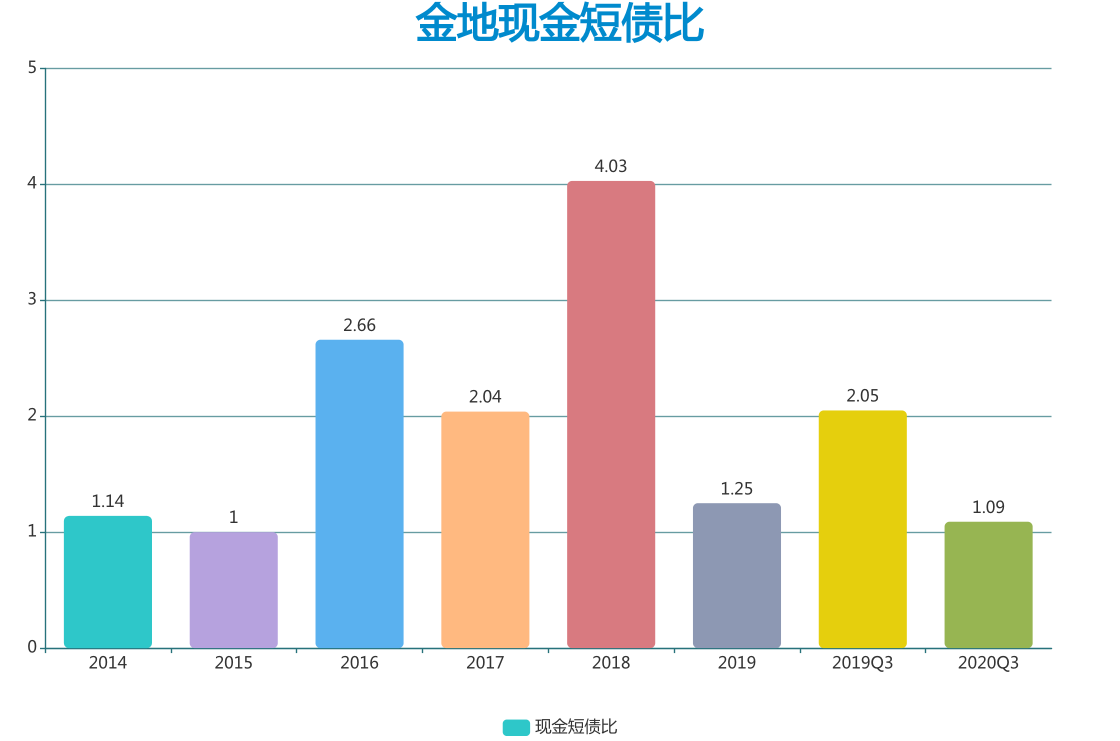 最新數(shù)據(jù)顯示,截至2020年三季度,金地現(xiàn)金短債比為1.09倍,恰好滿足監(jiān)管要求。而在2019年同期,這一數(shù)值為2.05倍。