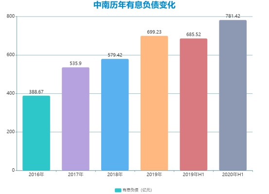從長遠(yuǎn)看,中南或許能夠?qū)⒆约旱呢?fù)債結(jié)構(gòu)優(yōu)化到位。截至2020年6月,有息負(fù)債約為781.4億元,這一絕對(duì)值在同規(guī)模公司中并不算高,短期借款和一年內(nèi)到期的非流動(dòng)負(fù)債為237億元,占比30.33%。