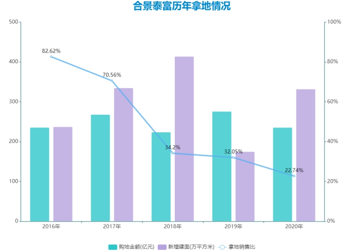 數(shù)據(jù)顯示,截至2020年12月,合景泰富新增21宗地,新增建面331.97萬平方米,購地總金額為235.59億元。