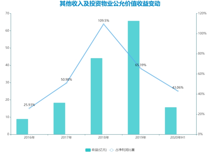 2019,年合景泰富錄得投資物業(yè)公允值收益約37.16億元,比2018年的17.14億元增長116.8%;但該項回報在疫情集中爆發(fā)的2020上半年受阻明顯,期內(nèi)投資性物業(yè)公允價值收益凈額僅錄得3.52億元,其中酒店營運(yùn)收入同比大減46.2%,營運(yùn)按年下跌46.2%至1.3億元。