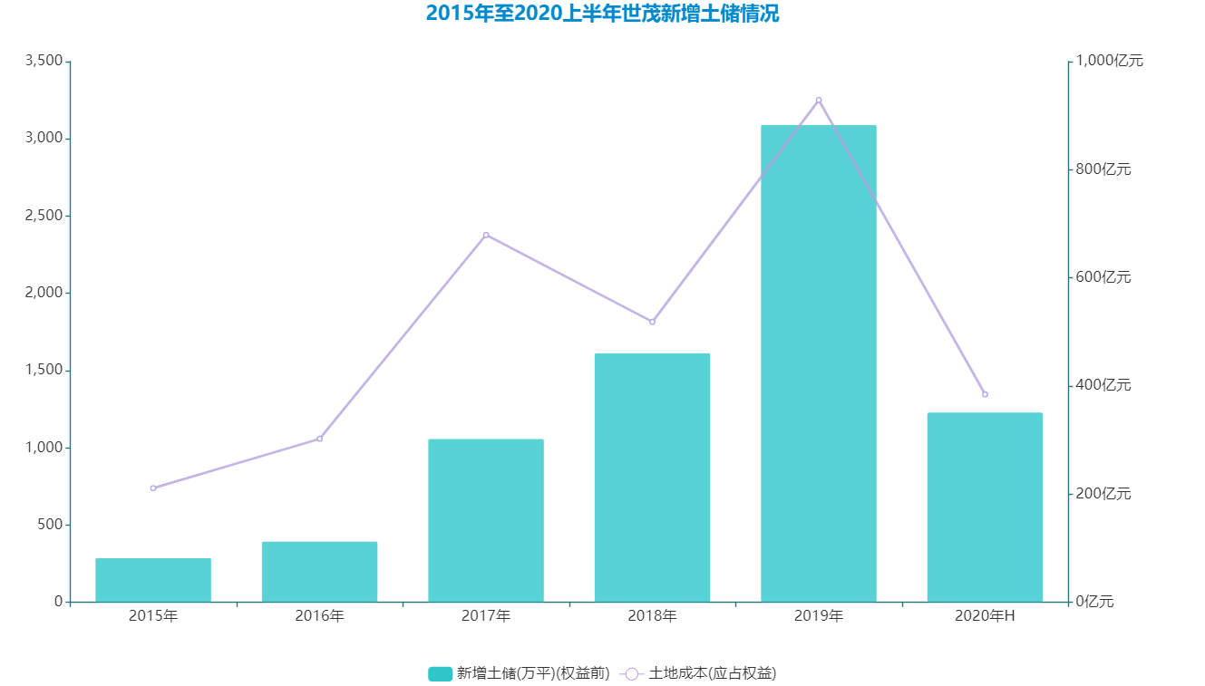 2020年上半年,世茂新增土儲1232萬平方米,總土儲(權(quán)益前)達(dá)到8393萬平方米,總貨值1.45萬億元。