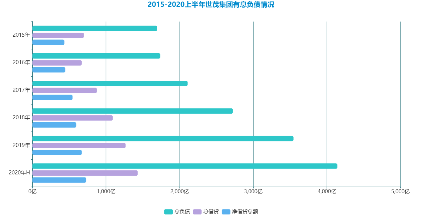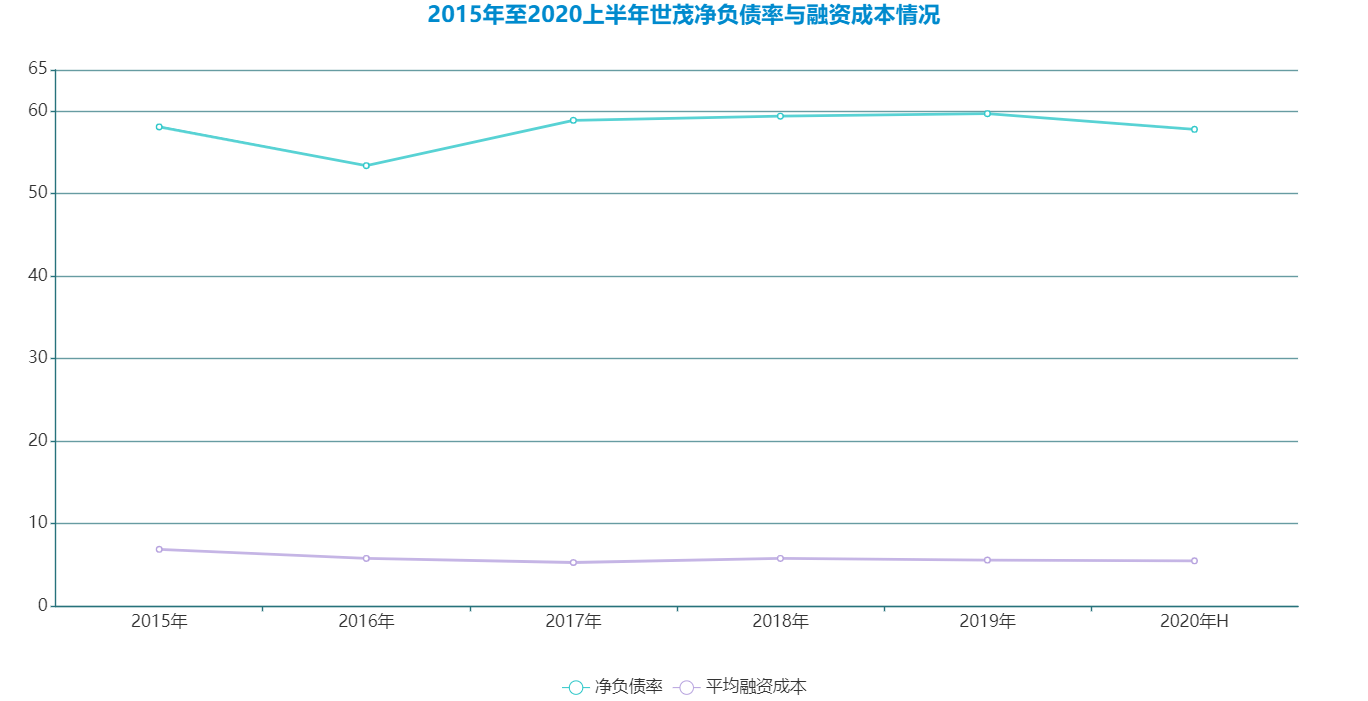 2020年上半年數(shù)據(jù)顯示,世茂僅一項指標(biāo)超出閾值,因此有息負(fù)債年增速需控制在10%以內(nèi)。