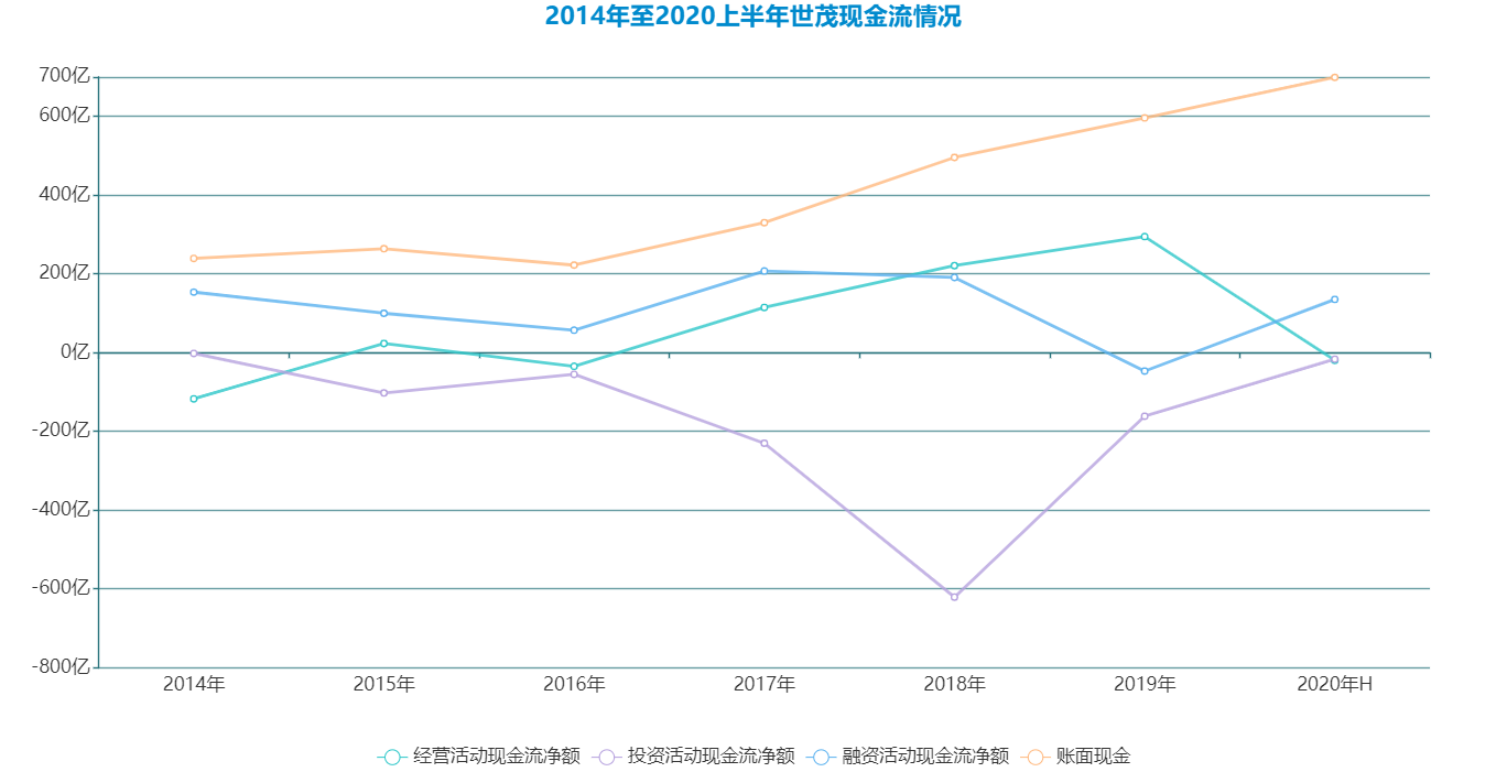 2020上半年,世茂現(xiàn)金流情況有所轉(zhuǎn)變,經(jīng)營活動現(xiàn)金流凈額為-19.48億元,投資活動現(xiàn)金流凈額為-16.49億元,但融資活動現(xiàn)金流凈額漲至135.25億元。