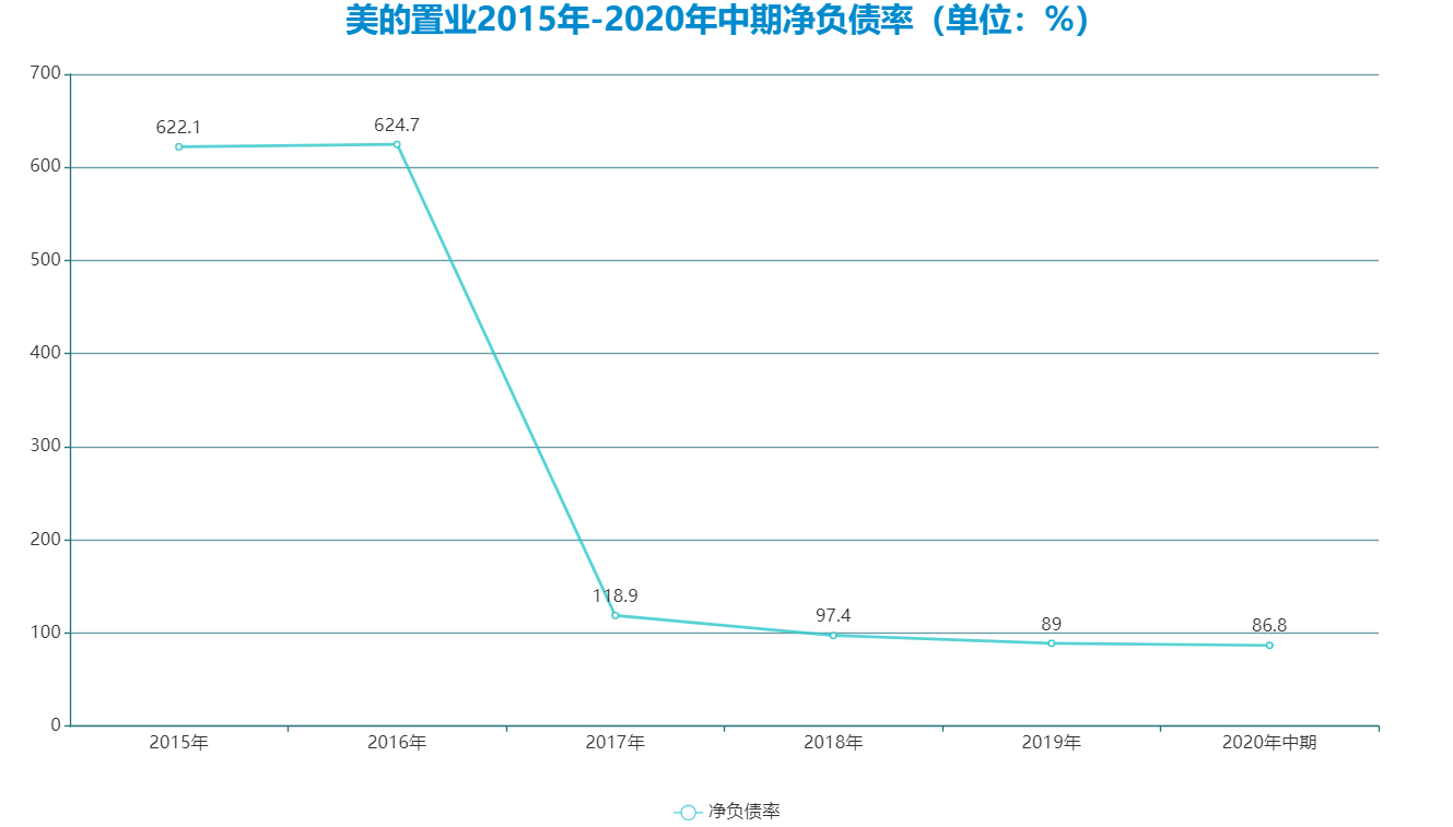 2020年中期,美的置業(yè)凈負(fù)債率降至86.8%,雖然和2019年相比降幅并不算太高,但從趨勢來看卻一直穩(wěn)定下降。