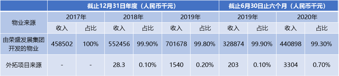 另一個(gè)隱憂就是榮萬(wàn)家對(duì)母公司過(guò)份依賴和缺乏外拓能力。過(guò)去幾年的數(shù)據(jù)顯示,母公司對(duì)榮萬(wàn)家的收入貢獻(xiàn)均超過(guò)99%,外拓項(xiàng)目收入占比不足1%。