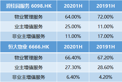 碧桂園服務(wù)和恒大物業(yè)收入分布
