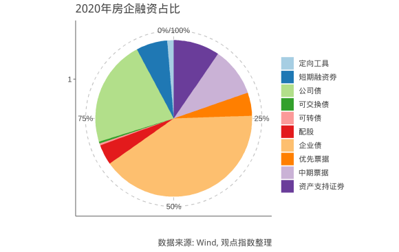 從公開融資渠道看,2020年房企融資類別中金額最多的是企業(yè)債,其中絕大多數(shù)為在香港、新加坡發(fā)行的中資離岸債券。