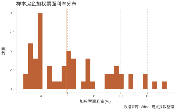 另一方面,可以看到個(gè)別房企的加權(quán)平均票面利率超過12%。