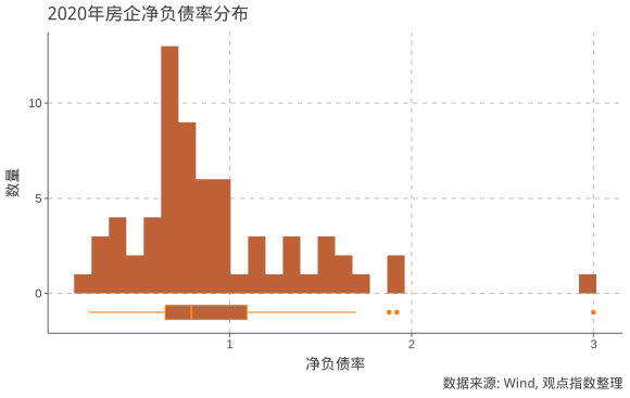 觀點(diǎn)指數(shù)預(yù)計(jì),截至2020年末,約72%樣本房企可以達(dá)標(biāo),凈負(fù)債率中位數(shù)為78%,相比2019年有較為明顯的改善。凈負(fù)債率過(guò)高異常值來(lái)自新上市房企,對(duì)該企業(yè)而言指標(biāo)尚未穩(wěn)定,參考意義不大。