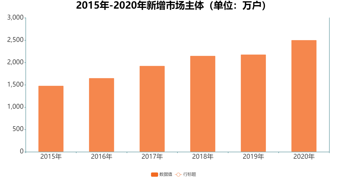 而在2020年,全年新登記市場主體2502萬戶,日均新登記企業(yè)2.2萬戶,年末市場主體總數(shù)達(dá)1.4億戶。