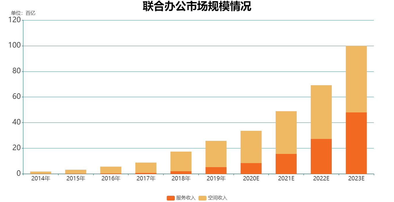 下一個五年,預(yù)計中國聯(lián)合辦公市場將保持穩(wěn)定增長,到2023年達(dá)到519.9億元,復(fù)合年增長率為40.3%。