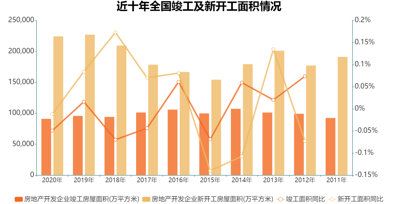 自2013年來,我國(guó)房地產(chǎn)竣工工面積增速減緩,2015年甚至出現(xiàn)負(fù)增長(zhǎng)。同時(shí),自2018年起,國(guó)內(nèi)房地產(chǎn)新開工面積增速逐年放緩,這意味著國(guó)內(nèi)房地產(chǎn)行業(yè)將進(jìn)入存量時(shí)代,從增量開發(fā)切換至存量經(jīng)營(yíng)模式。
