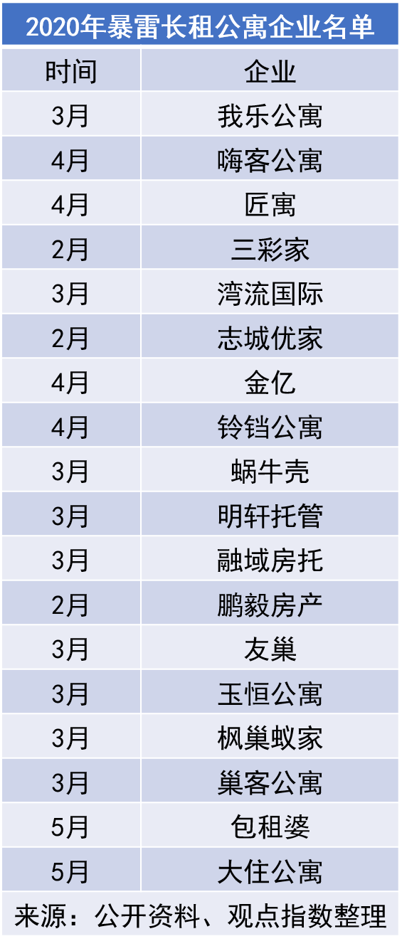 2020年上半年,突如其來的疫情讓多家中小型長(zhǎng)租公寓陷入經(jīng)營(yíng)困境。據(jù)觀點(diǎn)指數(shù)不完全統(tǒng)計(jì),年內(nèi)傳出暴雷消息的企業(yè)多達(dá)26家,大部分均因?yàn)閯?chuàng)始初期依賴“高收低租”的擴(kuò)張模式導(dǎo)致資金鏈斷裂,從而經(jīng)營(yíng)困難或倒閉。