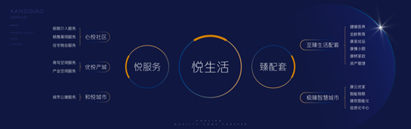 在戴總分享的悅生活體系架構(gòu)中,康橋悅生活被細分成“悅服務”和“臻配套”兩個大版塊。悅服務,代表了服務空間的橫向延伸,是康橋?qū)Υ蠓盏纳疃壤斫?,也是管理尺度和管理深度的量級變化,致力于筑造美好生活的全場景?/p>