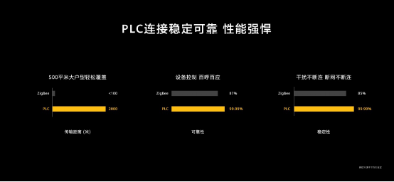 PLC未能廣泛應(yīng)用到家庭網(wǎng)絡(luò)中,主要是面臨著干擾和衰減的兩大難題,對此為華為自研了PLC芯片,并且將成熟的工業(yè)級PLC芯片首次應(yīng)用在家庭中,解決了一直困擾行業(yè)的電力干擾、衰減等問題。全屋PLC技術(shù)具有高成熟、高穩(wěn)定、高連接、高可靠、易布署等優(yōu)勢。目前已實現(xiàn)支持2000米傳輸距離,輕松覆蓋高達(dá)500平的大戶型,華為實驗室測試顯示累計100萬+小時不掉線,通訊成功率高達(dá)99.99%,極端條件斷網(wǎng)不斷聯(lián);在擴展性上可連接設(shè)備多達(dá)384個,滿足家庭大量設(shè)備擴展需求。(華為實驗室數(shù)據(jù))