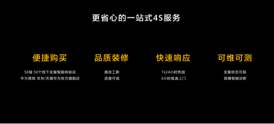 作為一套系統(tǒng)性可量產(chǎn)落地的實用方案,華為全屋智能提供了一站式4S服務(wù)。施工過程高效透明,消費者在App上即可輕松查看,交房時NFC一碰交房,全屋配置輕松同步到手機上,更便捷,更有儀式感。同時配套售后和日常維護,如某家電停止工作,系統(tǒng)會從插座、布線、開關(guān)等多方面分析,第一時間找到故障;針對客戶疑問提供7X24小時熱線服務(wù),遇到問題工程人員將會在3小時內(nèi)上門解決,一站式服務(wù),為用戶解決后顧之憂。