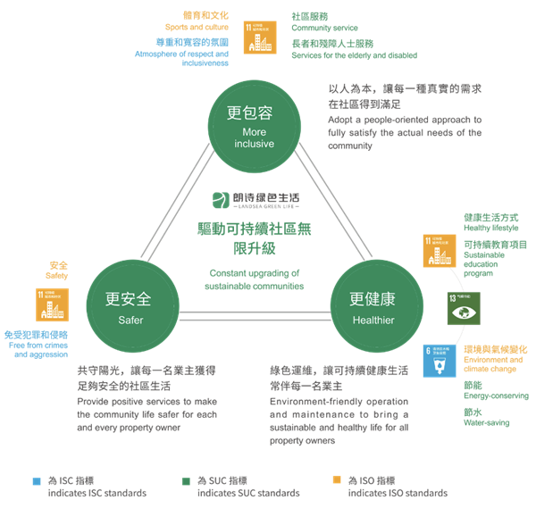 對標(biāo)全球可持續(xù)發(fā)展目標(biāo)、ISO37120可持續(xù)城市與社區(qū)標(biāo)準(zhǔn)、SUC可持續(xù)城市與社區(qū)標(biāo)準(zhǔn) 、ISC可持續(xù)社區(qū)標(biāo)準(zhǔn)等國際標(biāo)準(zhǔn),提煉出更包容、更安全、更健康,作為可持續(xù)社區(qū)的三大維度,驅(qū)動可持續(xù)社區(qū)無限升級。
