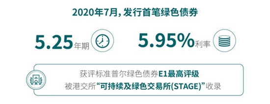 憑借綠色指標的不斷突破,2020年7月,旭輝首次發(fā)行合計5億美元、利率5.95%的5.25年期境外綠色債券,獲評標準普爾綠色債券E1最高評級,并作為首個內(nèi)地房企獲得香港品質(zhì)保證局(HKQAA)頒發(fā)的“綠色金融發(fā)行后階段”證書。該綠色債券亦被港交所“可持續(xù)及綠色交易所(STAGE)”收錄,旭輝因此成為“綠色交易所”首批企業(yè)中唯一的中國內(nèi)地房企。
