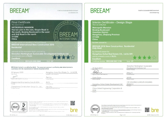 杭州 | 都會山獲BREEAM四星雙認證證書