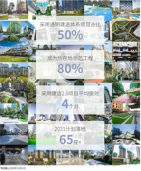 更值得一提的是,引領(lǐng)行業(yè)革新的“旭輝透明工廠”在2020年得到廣泛推廣。“旭輝透明工廠”依托新建造工藝的組合和有效的工序穿插,在致力保障項目質(zhì)量的同時,讓客戶在房屋建造過程中親眼見證“家”的成長,為施工過程注入可持續(xù)發(fā)展理念,一經(jīng)推出便為行業(yè)及主管部門爭相參觀借鑒,并有效提升了項目的客戶轉(zhuǎn)化率。截至2020年底,旭輝已在全國29個城市已落地40座透明工廠,全國范圍內(nèi)已采用透明建造體系的項目占比為50%。公司提出,要在2021年實現(xiàn)落地超過65座旭輝透明工廠。