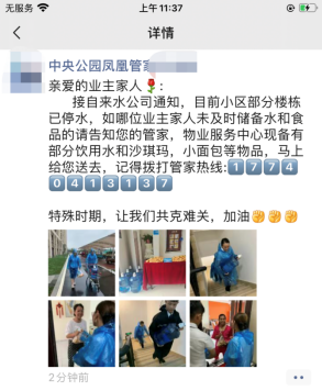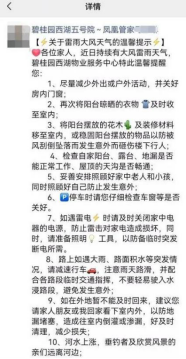 (鳳凰管家在朋友圈提醒業(yè)主做好防汛措施)
