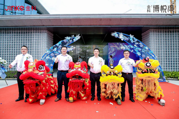 數(shù)百個“星空”球在大家的倒數(shù)聲中飛向天空,標(biāo)志著這場“星云圓夢”的旅程正式啟航,也宣告著金科·博悅灣營銷中心正式開放。別具一格的“夢之隊”表演、莊嚴(yán)肅穆的點睛儀式、縱躍騰挪的醒獅表演,將現(xiàn)場的氣氛推向高潮,也一次次獲得眾位來賓的點頭贊許與熱烈掌聲。